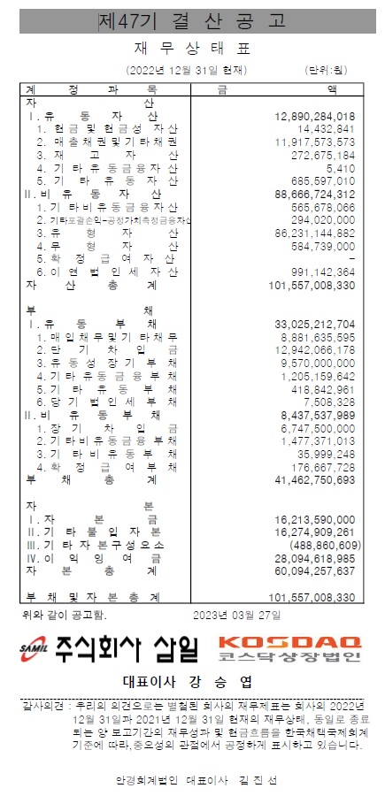 제 47 기 결산공고