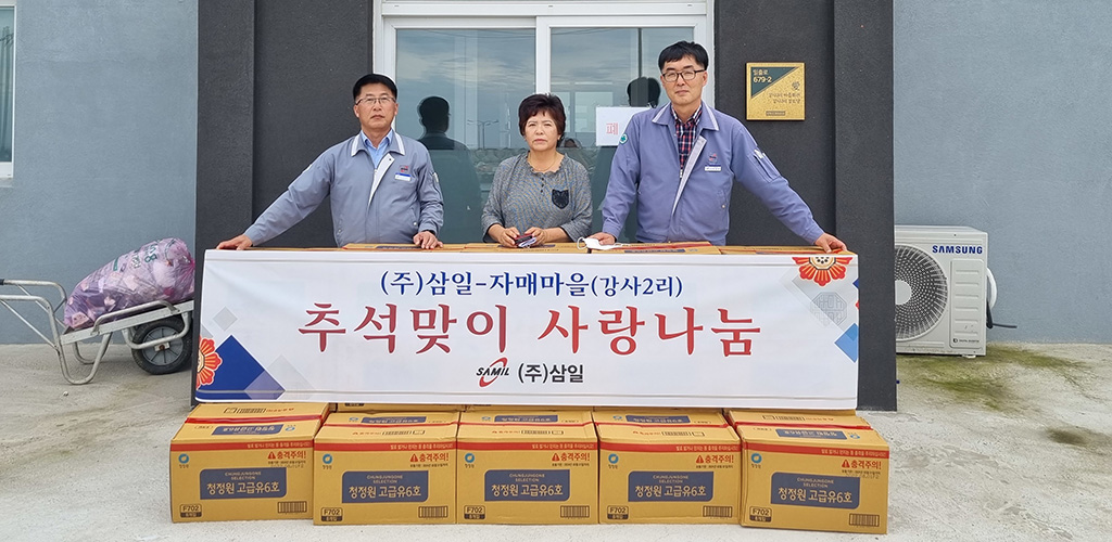 삼일 관계자는 “명절을 맞아 자매마을 주민들을 위해 작지만 도움이 될 만한 선물을 마련했다”며 “앞으로도 지역 사회에 도움을 주는 활동을 지속하도록 노력하겠다”고 말했다.