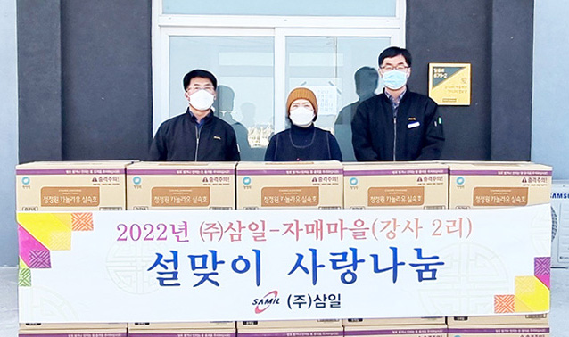 (주)삼일 관계자는 “국민 최대의 명절인 설을 앞두고 있으나 코로나19로 고향 방문이 어려워 어르신들께서 많은 외로움을 느낄 것으로 예상된다”며 “작은 선물이지만 어르신들에게 도움이 됐으면 하는 바람에서 선물세트를 준비했다”고 말했다.